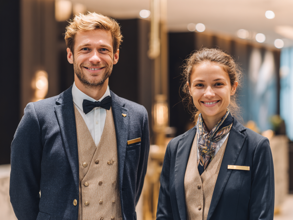 Hospitality sector uniforms are crafted to reflect professionalism, elegance, and comfort for staff in hotels, restaurants, and service environments. These uniforms—such as reception suits, waiter outfits, housekeeping attire, and concierge uniforms—enhance brand image, ensure staff comfort during long working hours, and help deliver a welcoming and high-quality guest experience.